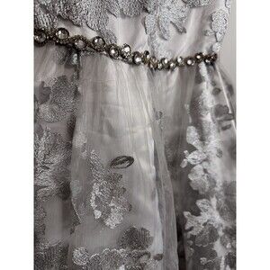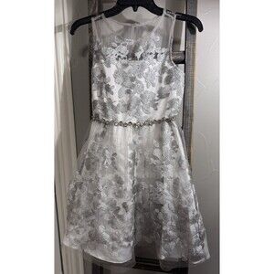 Rare Editions White and Silver Embroidered Flowers Net Dress Size Youth 14