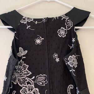 Rare Editions black dress with white embroidered flowers. Tie back. Size 14