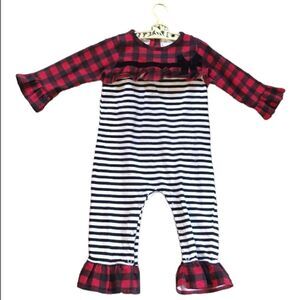 Rare Editions 18M Toddler's Snap Button Striped Plaid Red Christmas Romper