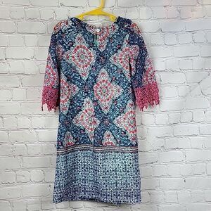Rare Editions Girls Navy Lace Overlay Medallion Print Colorful Shift Dress Sz 6