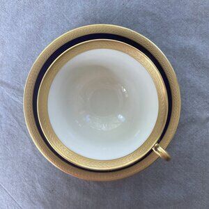 Rare & Elegant! Syracuse China Old Ivory Royal Court Cup & Saucer Set, Navy Blue