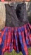 Very Unique Beautiful dress. Versatile to if you want it elegant or edgy. Homecoming / Prom / Party. Ruffle mesh poof under the silk plaid red blue skirt. Black corset looking lace black flower embroidered strapless. Size 40. Measurements added plus a size guide . Please make sure it fits!