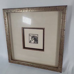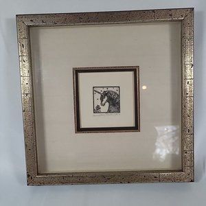 Rare Etching Unicorn & Rose 1976 Alice V. Scott Framed & Matted 12" x 12" 50/100