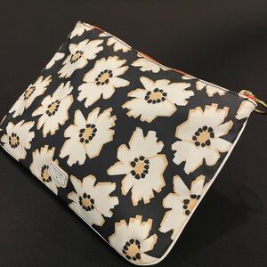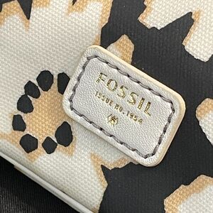 Rare FOSSIL zippered makeup / accessories bag / pouch / clutch. Approx 10.5" x 8". Mod daisy pattern in black, white & tan. This modern daisy pattern is hard-to-find, HTF, Rare. Coated cotton canvas PVC. Easy clean up. Water resistant.