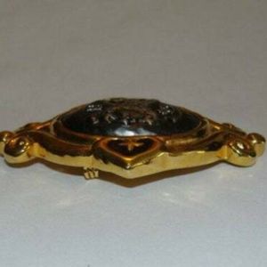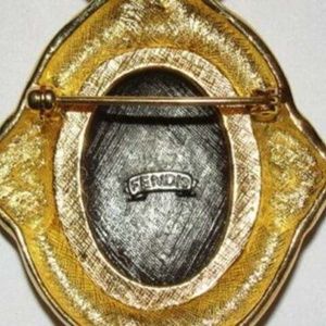 Some black enamel present as well as the "FF" monogram for Fendi, and features the Greco-Roman deity, Dionysus or Bacchus in the middle...
