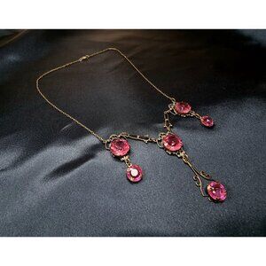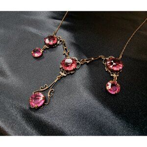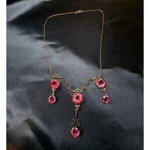 Rare Find Antique 1920s Czechoslovakian Necklace With Pink Glass Stones & Ornate