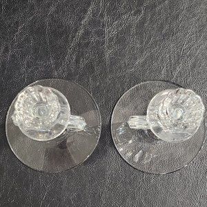Gorgeous crystal clear MCM works of art. These two single taper candlestick holders are from the 1940s. The maker was Fostoria and the pattern is called plume. These are in a clear color line number 2594. They have a shriek half moon crescent shape with a bubble chain pattern The candle cup sits on a circular platform. No etchings. Each candlestick measures 4.5 inches Diameter base. X 5.25 inch height X 3 inches in width. Both candlesticks are an excellent vintage condition. They actually look brand new. Non smoking pet free home @ ER NW Boxed