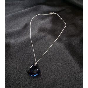 Rare Find Early 2000s Swarovski Heart Pendant Necklace With Crystal Blue Charm
