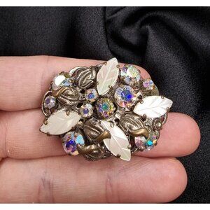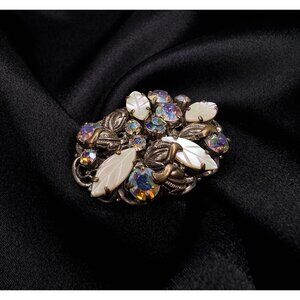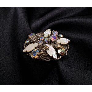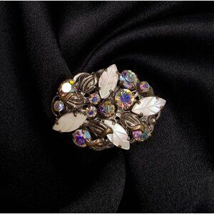 Rare Find Vintage 1950s-1960s Aurora Borealis Rhinestone & Mother-Of-Pearl Leaf