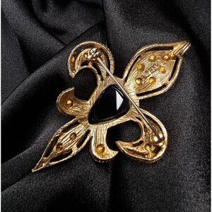 Rare Find Vintage 1960s BSK Signed Fleur-De-Lis Black & Gold Brooch
