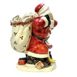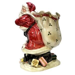 This extremely rare Fitz and Floyd Santa figurine from 1987 is a beautiful addition to any Christmas collection. The large Santa is approximately 16.5"H x 11.5"W x 11"D and features an open gift bag, perfect for displaying small treats or trinkets. This vintage piece was made in Japan and is in excellent condition, ready to bring holiday cheer to your home. The intricate details and vibrant colors make it a standout decoration. Don't miss the opportunity to own this charming and collectible Fitz and Floyd Santa! # 4894