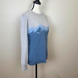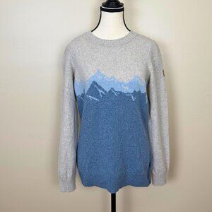 This Fjällräven sweater features a beautiful mountain design in shades of blue, inspired by Greenland’s landscapes. Made from recycled wool, this sustainable and durable sweater is both stylish and functional. A rare find—this design is no longer in production.