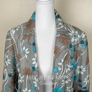 Rare Floral Silk Jacket ASO Phoebe Halliwell Charmed Gray Blue Flower Medium