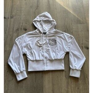 Rare Forever 21 X Hello Kitty Velour Bling Hoodie Sanrio Collection White Large