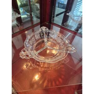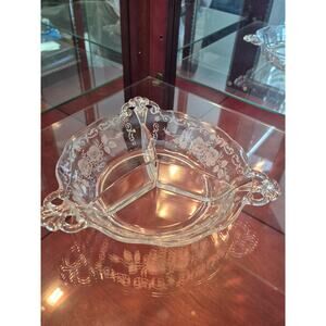 Rare Fostoria Midnight Rose 3 Part Relish Dish Etched Depression Glass Vtg 30s