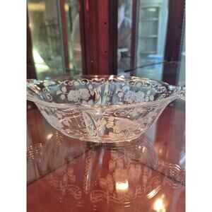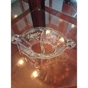 Rare Fostoria Midnight Rose Divided Relish Dish Etched Depression Glass Vtg 30s