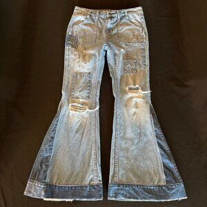 Rare Free People Festy Super Flare Patchwork Jeans Sz 27