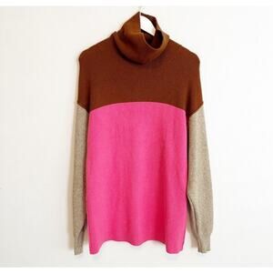 Trendy Free People oversized colorblock sweater in pastel pink, beige & brown — rare colorway and the perfect soft-girl / cozy holiday look. Comfy turtleneck design, relaxed drape, and plush knit texture. Ideal for fall coffee dates or winter lounging.