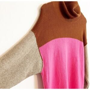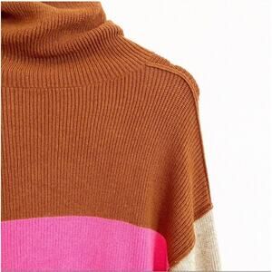 Rare Free People Soft-Girl Colorblock Turtleneck Sweater XS Pink Beige Brown EUC