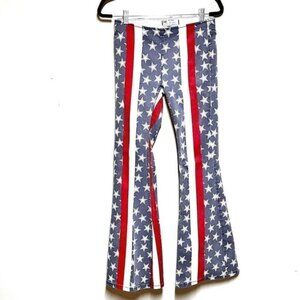 Rare Free People Stars and Stripes pull on Penny Flares Womens Sz 27