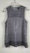 Gorgeous and rare French Connection sleeveless top. Excellent condition. The beading and stitching form a checkered pattern. The sequins gradually get larger from top to bottom. Very stunning. The fabric color is pewter (grey/blue). The sequins and beads are iridescent with shades of green, amber, blue, and purple. Sparkly!