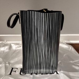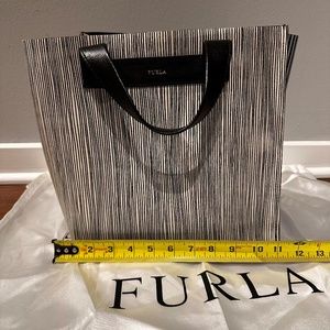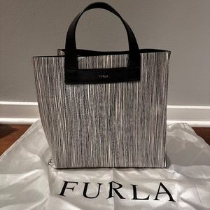 Rare! Furla Divide-it Tote Black and White Striped Medium Sized Shopper Tote Bag