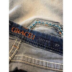 Rare GRACE in LA Embroidered Embellished Rhinestone Easy Fit Jean Shorts Size 27