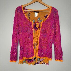 Rare Gai Mattiolo Crochet Cardigan Size 12 Bold Color Y2K Boho Designer Italy