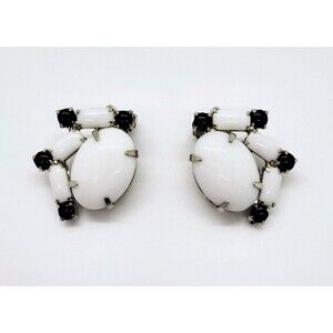 Rare Garne Black Accents with White Milk Glass Clip On Earrings