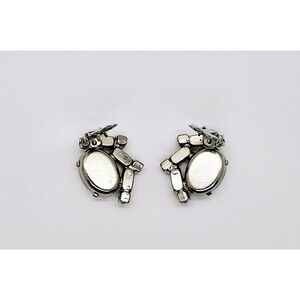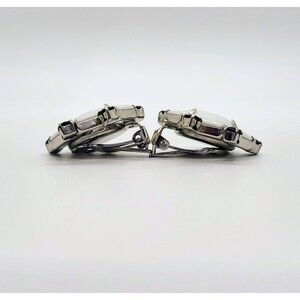 These white Garne, milk glass clip on earrings have black accents and silver tone clips. Garne was only in business from 1945 to the late 1960s, but were purported to use good materials, so the black accents may be glass or could be onyx. These signed earrings are 1 inch long with silver tone clips in excellent working order. I cant find any flaws on these earrings, and I have provided detailed photos for you to review.
