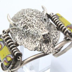 Rare! Gary Edwards Navajo Sterling Silver Trade Beads Buffalo Head Cuff Bracelet