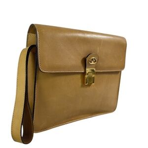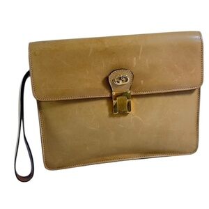 Rare Genuine Vintage GUCCI Tan Leather Clutch Wristlet Bag Made In Italy
