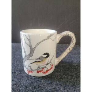 Mug in the Winter Chickadee pattern by Global Design Connections. Kate Williams, Chickadees ,Berries, Bark 4 1/8