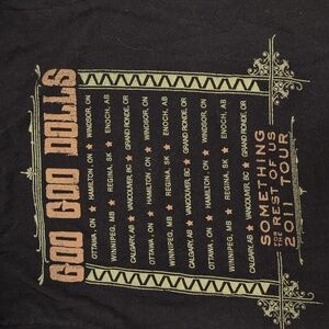 This is an authentic concert T-shirt from The Goo Goo Dolls' 2011 "Something For The Rest Of Us" Canada Tour. A great collector's item for any long-time fan or a cool vintage-style band tee for your rotation! 100% cotton band tee.
