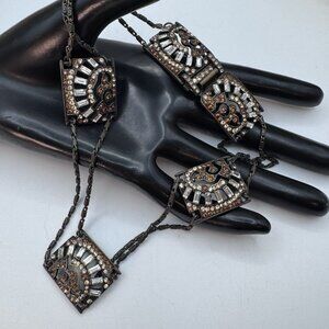 Rare Gorgeous Sweet Romance Art Deco Design Rhinestone Necklaces Brass Tone