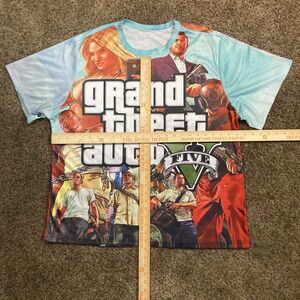 This rare Grand Theft Auto V GTA 5 game 3D printed men's shirt in size 2X is a unique and stylish addition to any collection. The colorful and detailed design, featuring elements of cars, the USA, horror, and more, is perfect for fans of the game or those looking to make a bold statement. With short sleeves and a comfortable fit, this shirt is ideal for everyday wear or special occasions, offering a touch of retro and hip hop flair to any outfit.