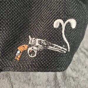 Grassroots create inspiring apparel for those who choose to stand out, be different, and create their own path. This unique embroidered paisley pattern in silver and smoking gun emblem, is one of their best. The hat is made with a combination of satin and acrylic materials, ensuring durability and comfort.