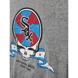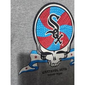 This rare Grateful Dead tribute T-shirt is a must-have for any fan of the iconic band. Featuring the words "Farewell Chicago" and a cool graphic, this grey shirt is perfect for men who wear size M. It is made of high-quality material that is comfortable to wear and will last for a long time. Whether you're a collector or just a fan, this T-shirt is a great addition to your wardrobe. Get it now before it's gone!