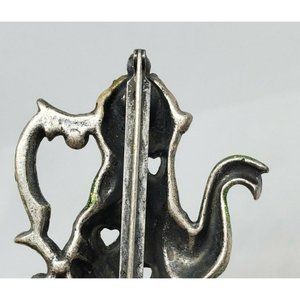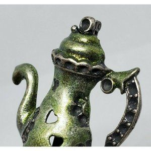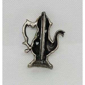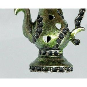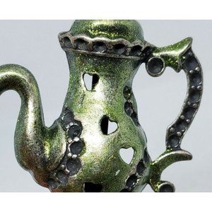 Rare Green Tea Kettle Lapel Pin Heart Embossed Hat Brooch