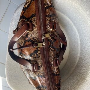 Good vintage condition. The python skin still looks beautiful overall. Shows normal signs of use and age including some darkening and softening on the leather trim.