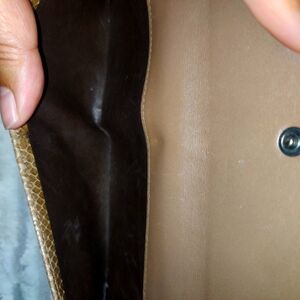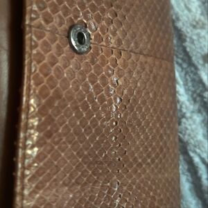 This is a rare hard to find Gucci python long wallet. It has a hook closure with 8 card slots, 4 bill compartment areas, and a back compartment. There is slight rubbing on the corners but no exposed piping. There is slight roughness around the back compartment where the button close is located. Still in very good condition, inside is clean, will make an awesome gift. Feel free to make an offer.