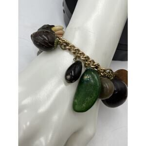 Rare HAWAIIAN Vintage Wooden Nuts Pods Seeds Nikar Handmade Charm Bracelet
