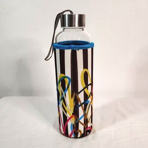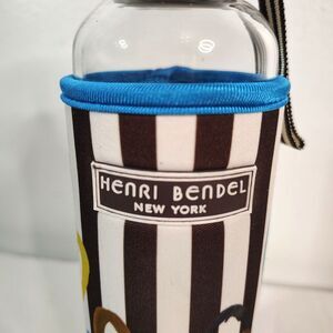 HENRI BENDEL New York Limited Edition Collectible Glass Water Bottle w Koozie Liner NWOT New Without Tags. This rare designer water bottle is from the elite upscale New York clothing store Henri Bendel. It features the iconic Henri Bendel striped design on a koozie type cover over a glass water bottle. This bottle is in new condition without the tags.