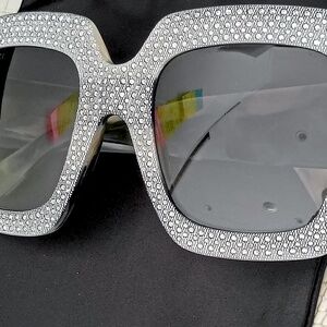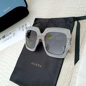 Rare HOT Gucci "GRAY COLOR" Swarovski Rhinestones Square Sunglasses GG0048/S