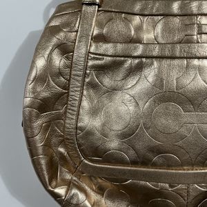 Rare HTF Coach Metallic Rose Gold All Leather Purse Shoulder Bag C Pattern