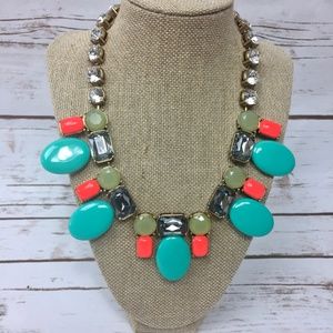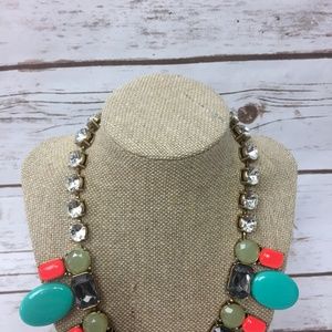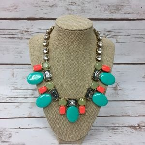Rare HTF Vintage Aqua Coral Green & Rhinestone J Crew Statement Necklace vtg