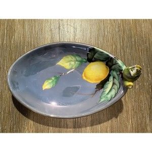 Rare Hand Painted Noritake Lusterware Lemon Design Art Nouveau Dish