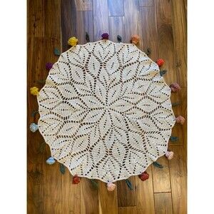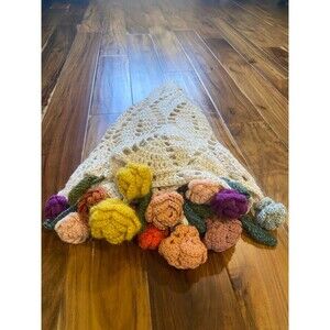 Rare Handmade Crochet Roses Floral Bouquet Round Blanket Gift 39”