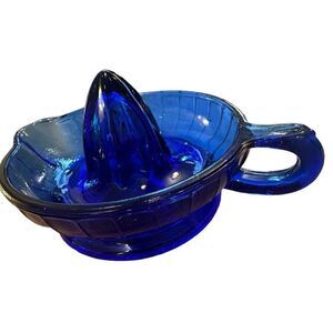 This gorgeous cobalt reamer adds a pop of color and vintage flair to any kitchen or glassware display. Ideal for both collectors and vintage enthusiasts, this rare Depression glass piece is as beautiful as it is functional.