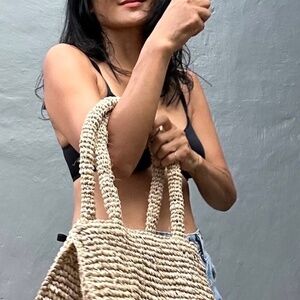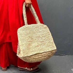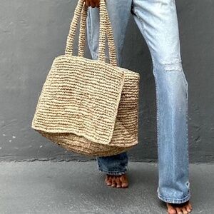 Very Rare Brand New Hi-End Hand Woven Twined Beach Bag has been made with 100% Natural Raffia.